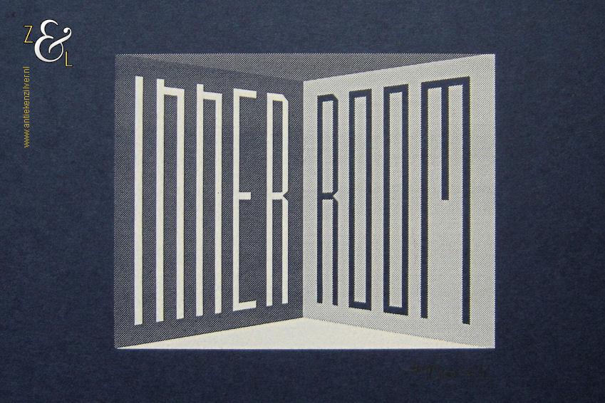 Deze kopie met de titel “Innerroom” is gemaakt door Simon Benson. De kopie is gedrukt op donkerblauw 160 grams papier en rechtsonder staat in potlood de oplage 40/300 nummer 40 van 300 met daarachter de signatuur / initialen SB van Simon Benson. De kopie heeft de afmeting van een A4, 29.7 cm lang bij 21 cm breed.
