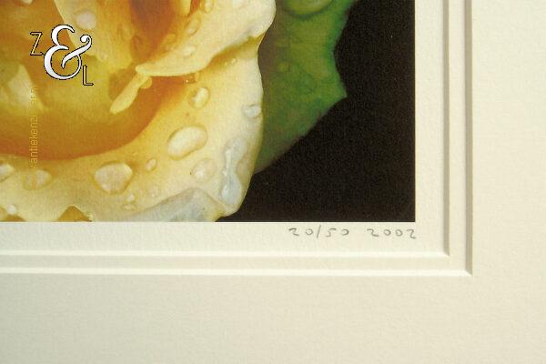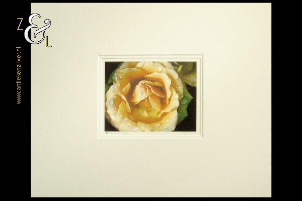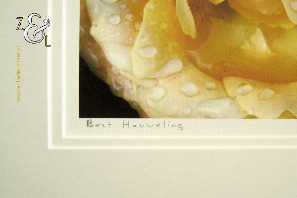 Deze print / foto met de afbeelding van een gele roos is gemaakt door Bert Houweling. De print / foto is linksonder in potlood gesigneerd Bert Houweling en rechtsonder staat de oplage 20/50 met daarachter het jaartal 2002. De print / foto is aan de binnenzijde van het passe partout gemeten 20 cm lang bij 15.3 cm breed, de buitenzijde van het passe partout is 50 cm lang bij 40 cm breed.