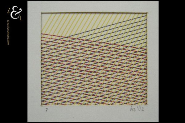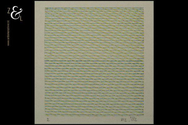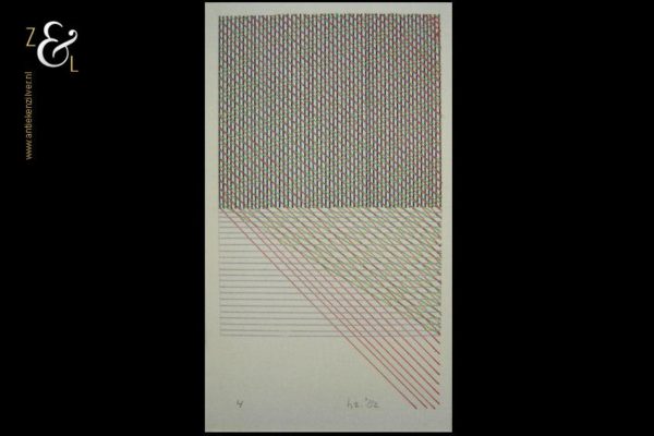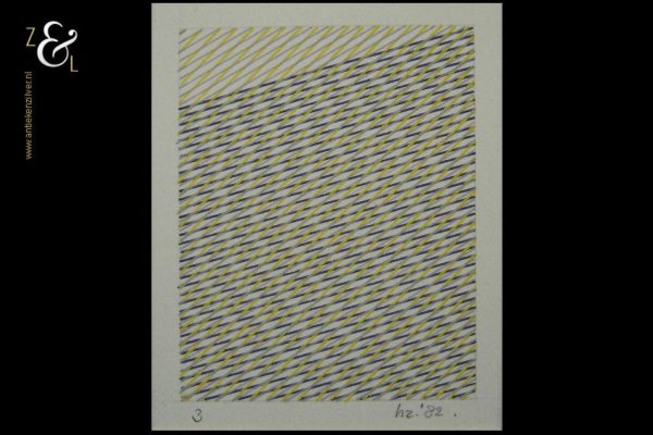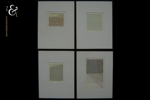 Deze vier geometrisch abstracte tekeningen met de titel “Rasters 1 t/m 4” zijn gemaakt door Hans Zweers. De tekeningen zijn in potlood rechtsonder gesigneerd en gedateerd hz ’82 en linksonder genummerd 1 t/m 4. De tekeningen meten aan de buitenzijde van het passe partout 19.7cm bij 15 cm. De tekeningen meten aan de binnenzijde van het passe partout: 1) 7.6 cm x 7 cm (2) 8cm x 7.6 cm (3) 8 cm x 6.6 cm (4) 13.3 cm x 7.9 cm.