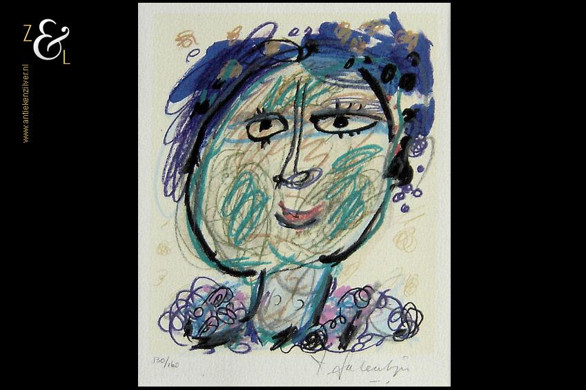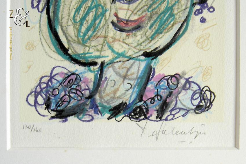 Deze zeefdruk met de afbeelding “portret van een dame” is gemaakt door Kees Salentijn. De zeefdruk is rechtsonder in potlood gesigneerd met K. Salentijn en linksonder staat de oplage 130/160. De zeefdruk is gemeten aan de binnenzijde van het passe partout 21.6 cm lang bij 17.8 cm breed. De buitenzijde van het passe partout meet 34.8 cm bij 34.8 cm. Het passe partout heeft een lichte foxing (een paar héél kleine bruine vlekjes). De zeefdruk is in perfecte staat.