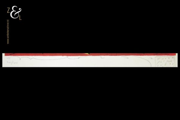 Deze zeefdruk van Milou Hermus is gemaakt in 1992 en meet 52 cm bij 50 cm. De zeefdruk draagt aan de onderzijde de signatuur van Milou Hermus, linksonder staat de oplage 201 / 250.