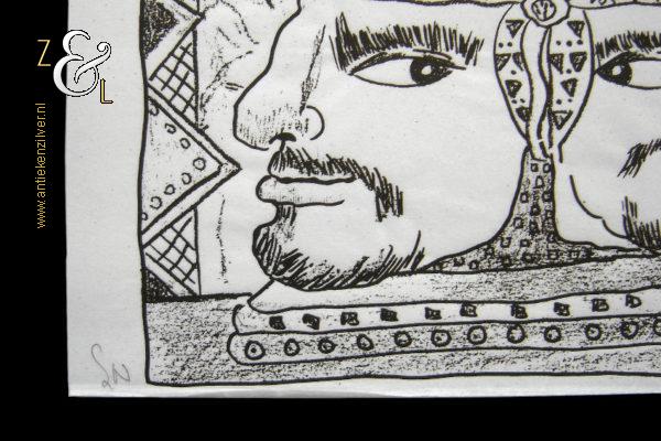 Deze zeefdruk zonder titel is gemaakt door Scott Neary. De zeefdruk is met zwarte inkt gedrukt op wit 50 grams transparant papier. De zeefdruk is met potlood linksonder gesigneerd met de initialen van Scott Neary SN en rechtsonder staat in potlood de oplage 40/300 nummer 40 van 300. De zeefdruk heeft de afmeting van een A4, 29.7 cm lang bij 21 cm breed.