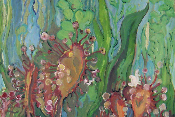 Dit schilderij met de titel “Pantoffeldiertjes” is gemaakt door Ing. W.A. Himmelreich. Het schilderij is geschilderd op board en is in verf gesigneerd WHCH. Het schilderij is 52 cm hoog bij 42 cm breed.