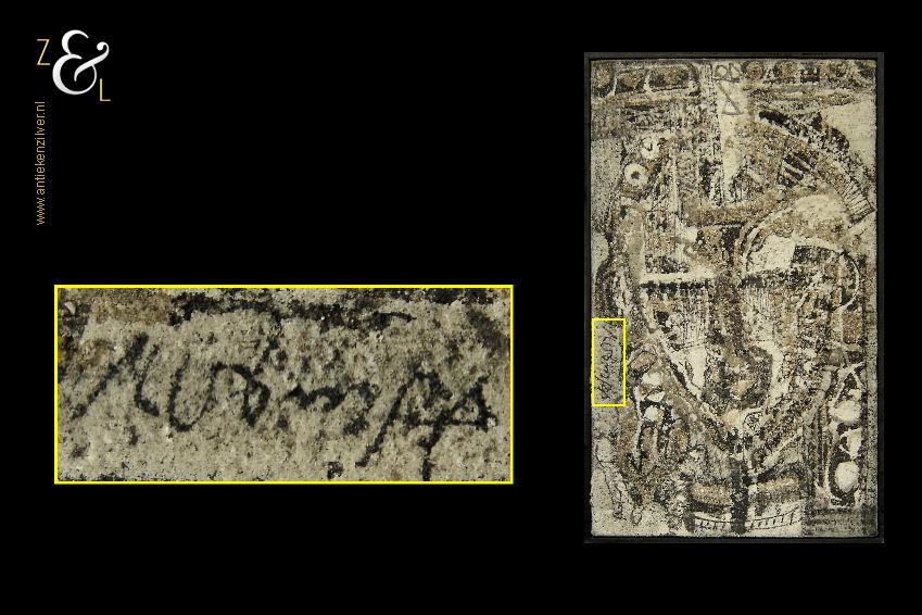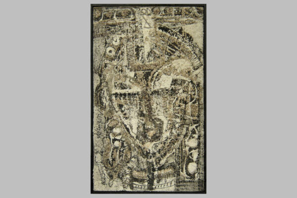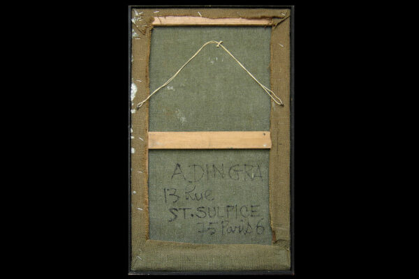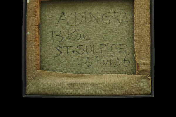 Dit schilderij is gemaakt in Parijs Frankrijk door George Ebrin Adingra. Het schilderij met de voorstelling van een Afrikaans gezicht of masker is aan de linkerkant verticaal gesigneerd en op de achterzijde van het schilderij staat geschreven: Adringa 13 Rue St. Sulpice 75 Paris 6. Het schilderij is aan de buitenkant van de lijst gemeten 56.2 cm lang bij 34.4 cm breed en is aan de binnenkant van de lijst gemeten 54.9 cm lang bij 33.1 cm breed.