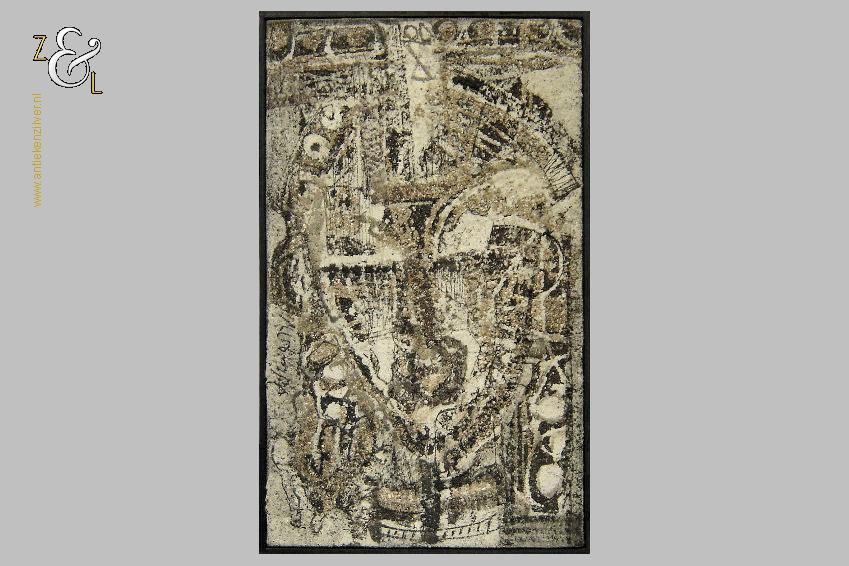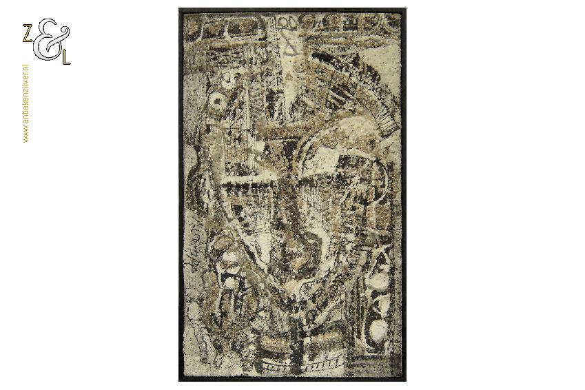 Materiaal: Verf en zand op jute canvas
