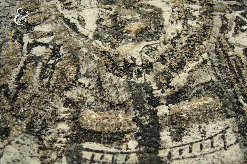 Materiaal: Verf en zand op jute canvas
