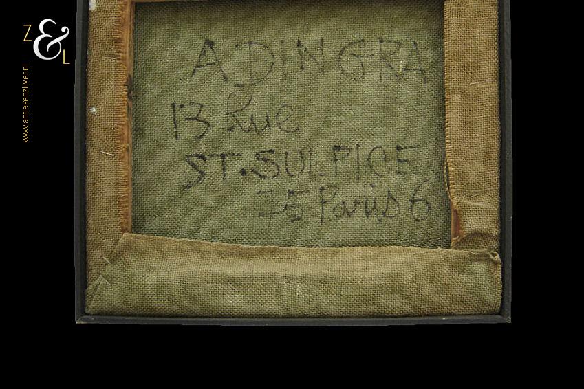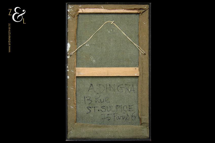 Dit schilderij is gemaakt in Parijs Frankrijk door George Ebrin Adingra. Het schilderij met de voorstelling van een Afrikaans gezicht of masker is aan de linkerkant verticaal gesigneerd en op de achterzijde van het schilderij staat geschreven: Adringa 13 Rue St. Sulpice 75 Paris 6. Het schilderij is aan de buitenkant van de lijst gemeten 56.2 cm lang bij 34.4 cm breed en is aan de binnenkant van de lijst gemeten 54.9 cm lang bij 33.1 cm breed.