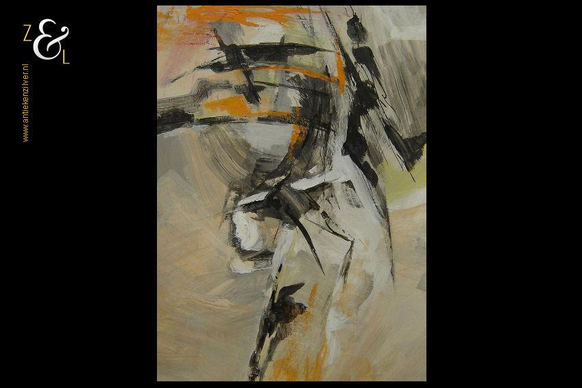 Dit schilderij is gemaakt door Wim Vellekoop (werkzaam te Haarlem). Het abstracte schilderij is met acrylverf geschilderd op karton en is rechtsonder gesigneerd met Wim Vellekoop. Het schilderij heeft   de afmeting van 51.3 cm bij 36.4 cm (binnenkant passe partout). De buitenzijde van het passe partout meet 70 cm bij 49.8 cm