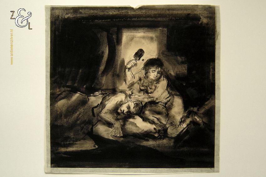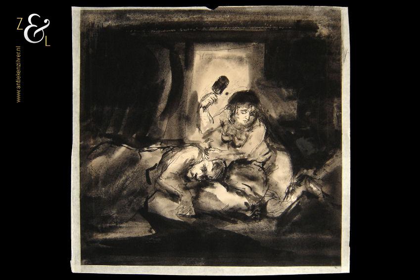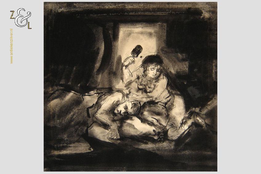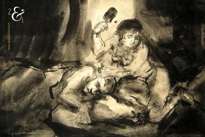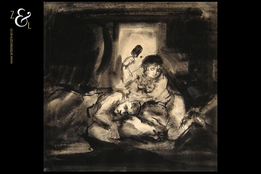 De gewassen inkttekening verdient een nieuw passe partout het oude (met vlekken) is inmiddels verwijderd maar kan worden aangeboden als men het kunstwerk komt ophalen.