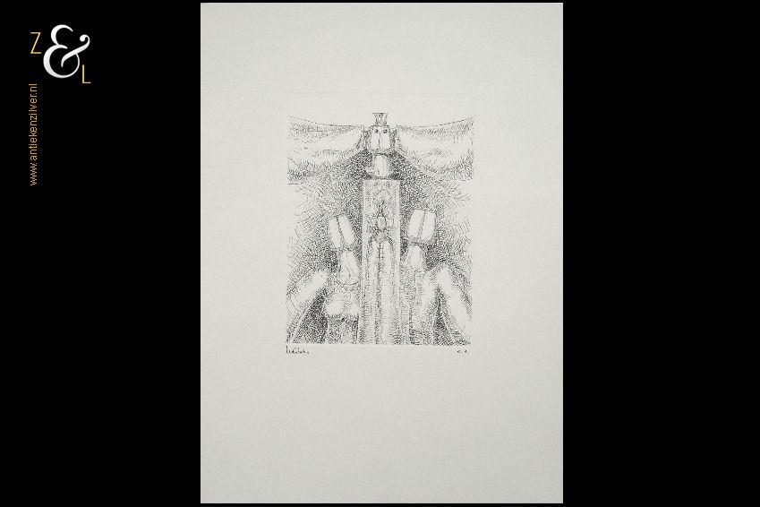 *Een épreuve d’artiste of E.A. is een aanduiding op grafiekbladen zoals litho’s, etsen, zeefdrukken of houtsneden die niet genummerd zijn. Het betreft een klein aantal exemplaren die de kunstenaar drukt om de kwaliteit van het papier, de inkt en afdruk te controleren. Deze niet genummerde bladen worden door de kunstenaar bewaard, maar in de meeste gevallen worden ze naast de genummerde oplage te koop aangeboden.