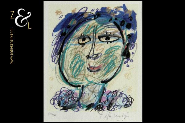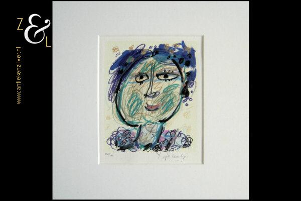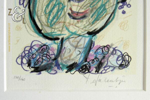 Deze zeefdruk met de afbeelding “portret van een dame” is gemaakt door Kees Salentijn. De zeefdruk is rechtsonder in potlood gesigneerd met K. Salentijn en linksonder staat de oplage 130/160. De zeefdruk is gemeten aan de binnenzijde van het passe partout 21.6 cm lang bij 17.8 cm breed. De buitenzijde van het passe partout meet 34.8 cm bij 34.8 cm. Het passe partout heeft een lichte foxing (een paar héél kleine bruine vlekjes). De zeefdruk is in perfecte staat.