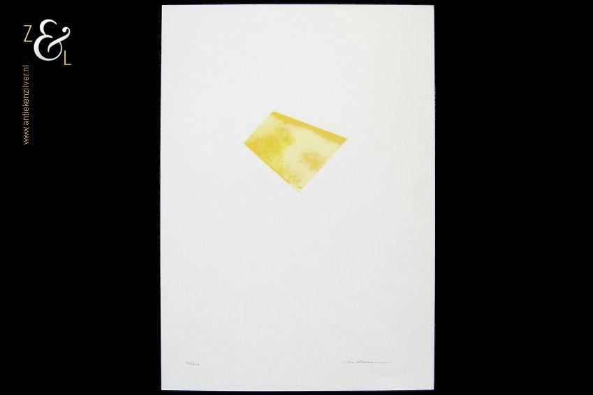 Deze zeefdruk zonder titel is gemaakt door Louis Baltussen. De zeefdruk is met de kleuren okergeel en lichtgeel gedrukt op wit 190 grams papier. De zeefdruk is rechtsonder in potlood gesigneerd met .Baltussen. en linksonder staat de oplage 40/300 nummer 40 van 300. De zeefdruk heeft de afmeting van een A4, 29.7 cm lang bij 21 cm breed en heeft een héél licht kreukje rechtsonder.