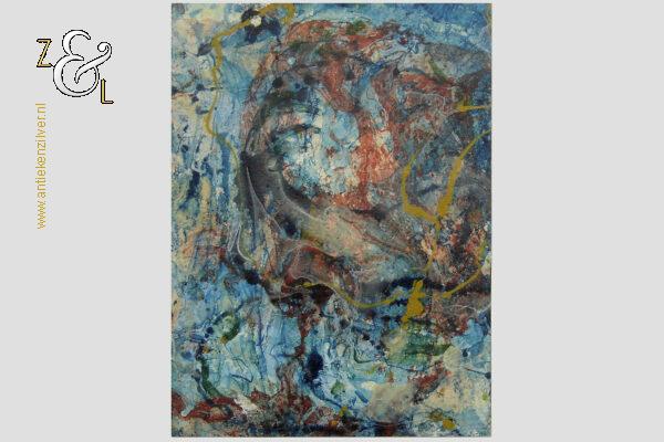 Toen wij de zeefdruk uit de wissellijst verwijderden zat er op de achterzijde van de zeefdruk een geschilderd niet gesigneerd kunstwerk op papier (geplakt op de hoeken met vier dubbelzijdige plakbandjes). De afmeting van dit kunstwerk is 28.5 cm lang bij 20.9 cm breed. Door wie dit geschilderd kunstwerk gemaakt is weten wij niet.