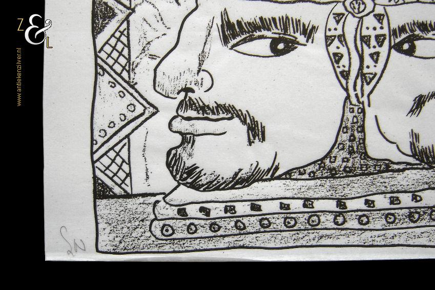 Deze zeefdruk zonder titel is gemaakt door Scott Neary. De zeefdruk is met zwarte inkt gedrukt op wit 50 grams transparant papier. De zeefdruk is met potlood linksonder gesigneerd met de initialen van Scott Neary SN en rechtsonder staat in potlood de oplage 40/300 nummer 40 van 300. De zeefdruk heeft de afmeting van een A4, 29.7 cm lang bij 21 cm breed.