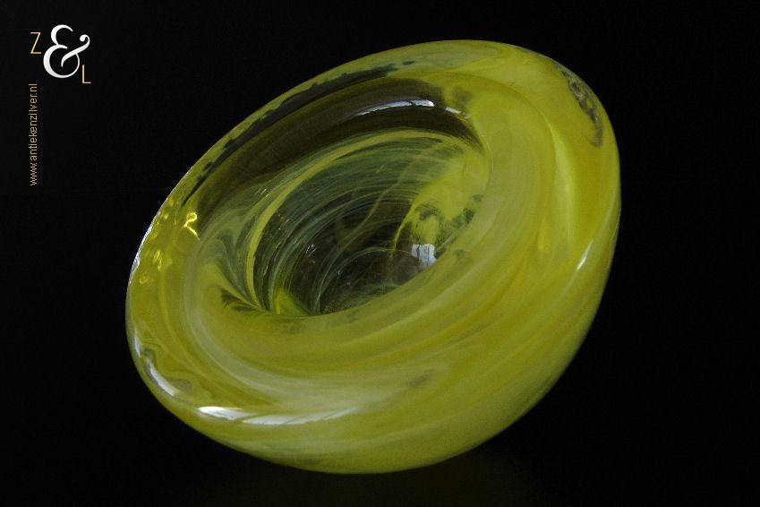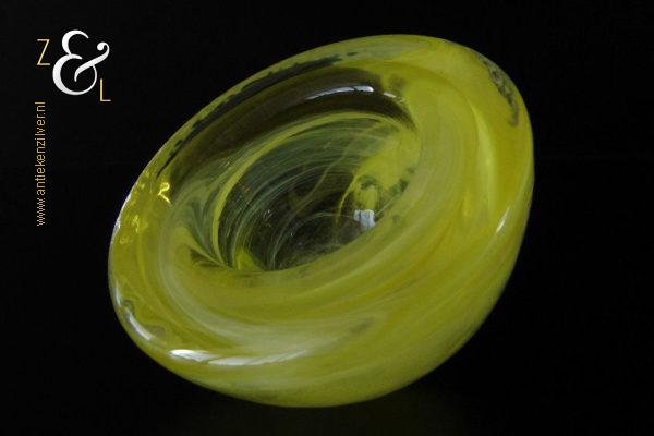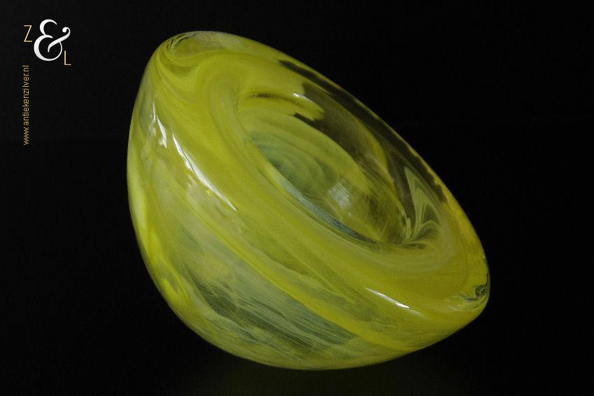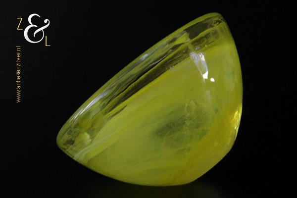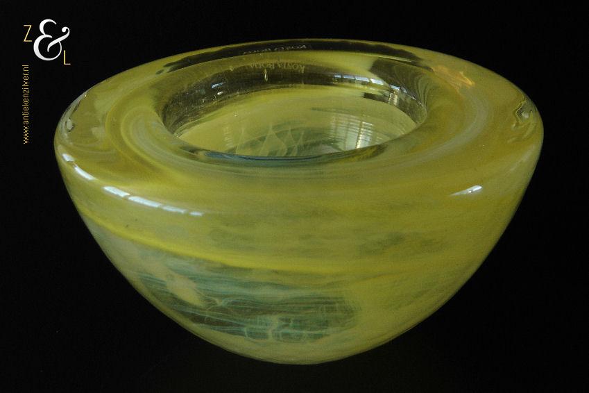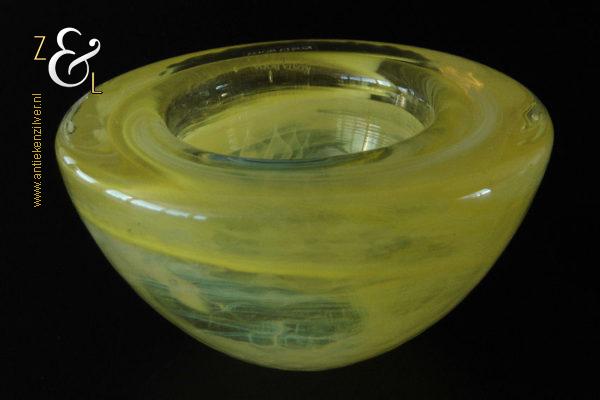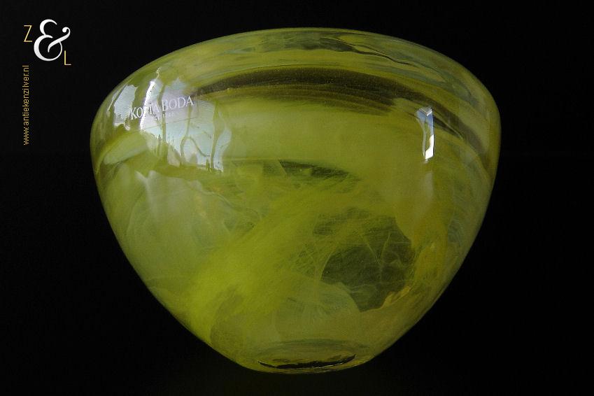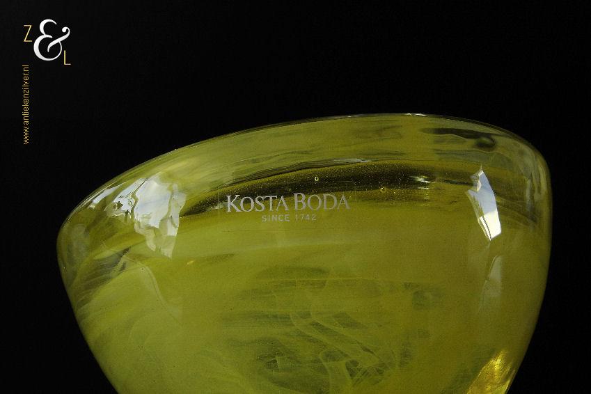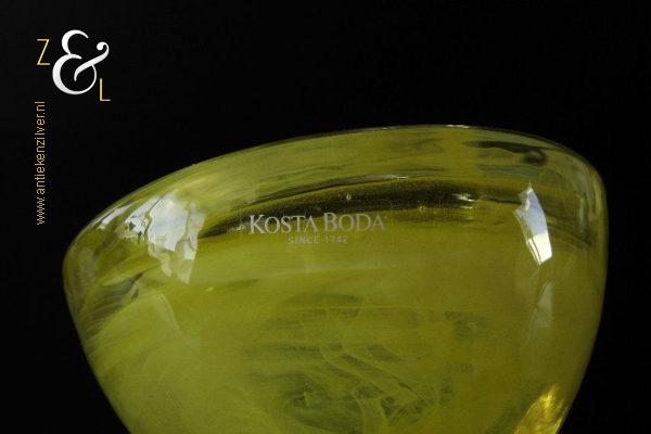Dit theelicht / waxinelicht uit de serie Atoll is gemaakt in Småland Zweden bij de glasfabriek Kosta Boda. De serie Atoll die uit meerdere schalen bestaat is een ontwerp van Anna Ehrner uit 1997. Het theelicht / waxinelicht dat het originele fabriekslabel “Kosta Boda since 1742” draagt, is op de hand gemaakt, met de mond geblazen en is uitgevoerd in een gesluierd dessin van transparant en geel gekleurd glas. Het theelicht / waxinelicht uit de serie Atoll weegt 336 gram heeft een diameter van 11 cm.