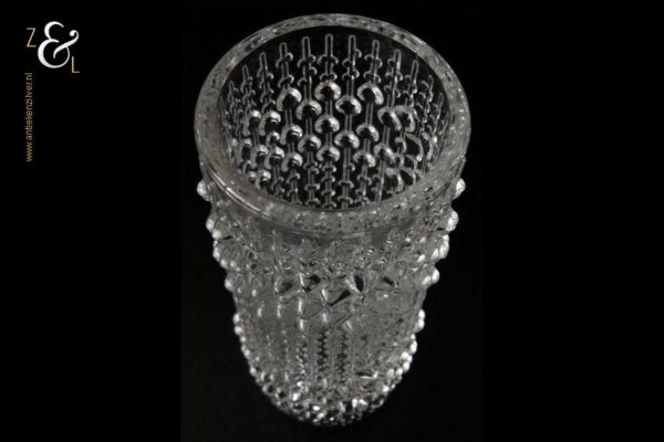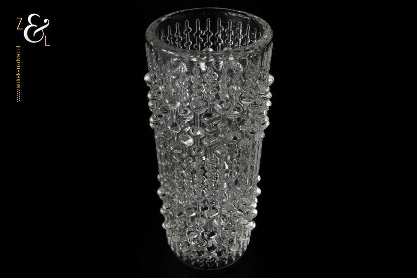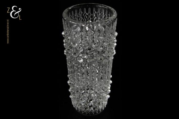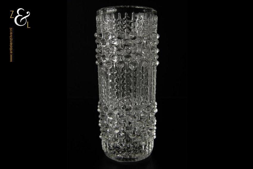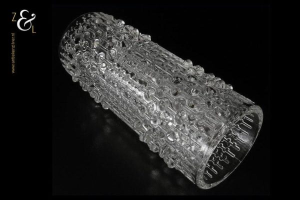 Deze zware helderglazen vaas model Candle wax is gemaakt bij de Tsjechische fabriek Sklo Unie / Hermanova Hut (Sklo is het Tsjechische woord voor glas), het is een ontwerp van Frantisek Peceny uit 1974. De vaas weegt 670 gram is 17.8 cm hoog en heeft een diameter van 7.8 cm.