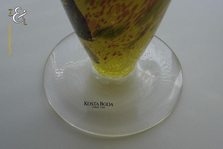 Deze vaas is gemaakt in Småland Zweden bij de wereldberoemde glasfabriek Kosta Boda. De serie Satellite die deel uitmaakt van de zogenaamde “Artist Collection” is in 1992 uitgebracht en ontworpen door de Zweedse kunstenaar Bertil Vallien. De onderzijde van de vaas is met een graveerpen gesigneerd: Kosta Boda, Artist Coll, B. Vallien, 49535. De vaas Satellite weegt 1000 gram heeft een diameter van 9.5 cm en is 27.5 cm hoog. De voet heeft een diameter van 10 cm.