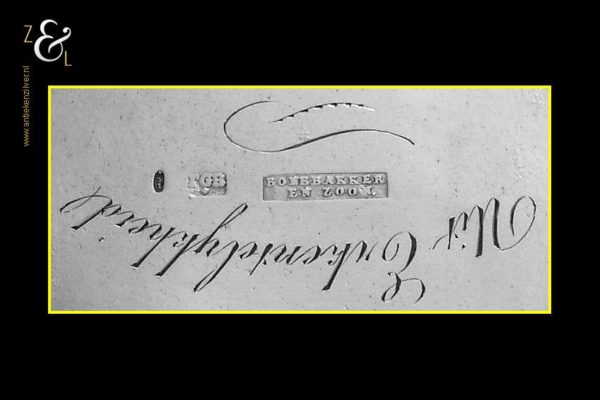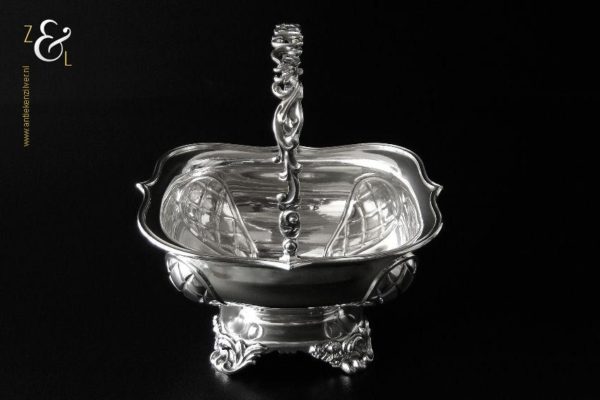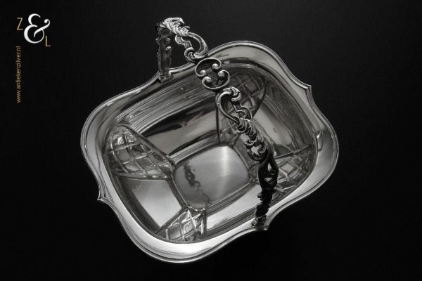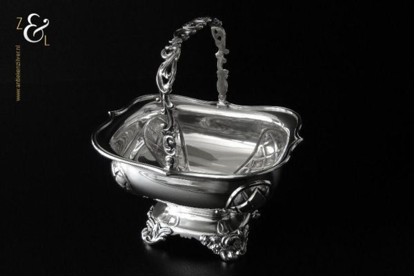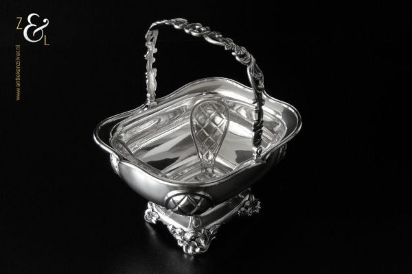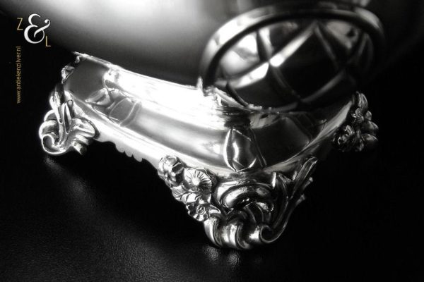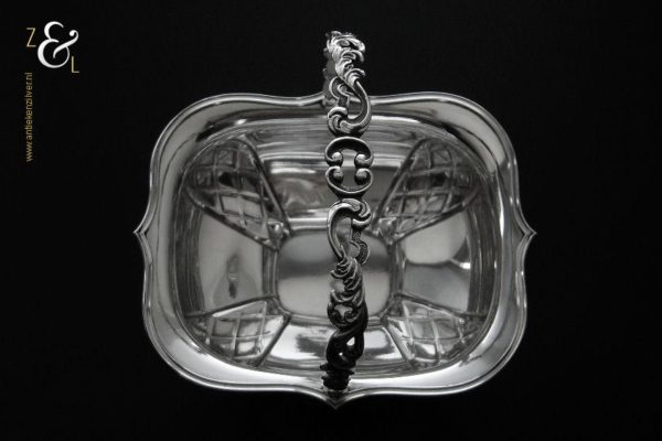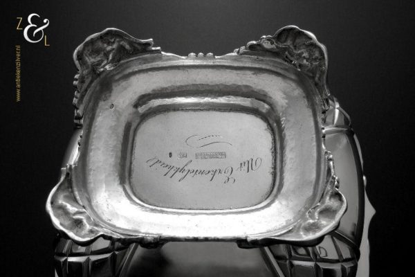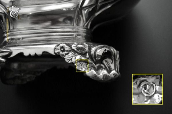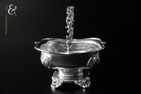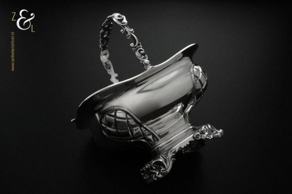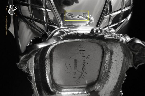 Aan deze bonbonmand / suikerklontenmand hebben twee zilversmeden gewerkt, dit is niet bijzonder. Vroeger werkten er vaker meerdere zilversmeden aan één stuk, de een deed bijvoorbeeld het drijf- en zaagwerk en de andere fabriceerde en soldeerde de gegoten stukken.