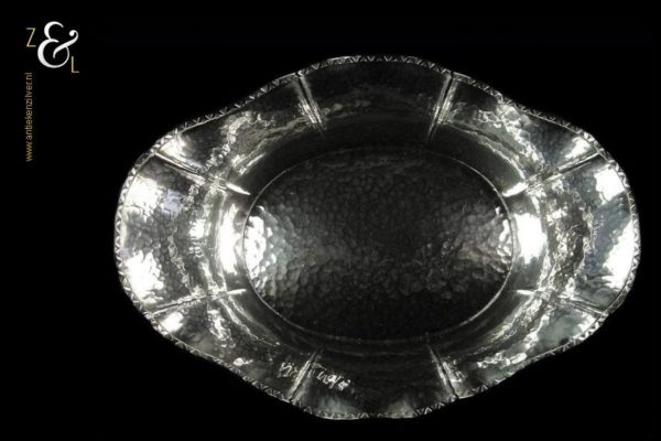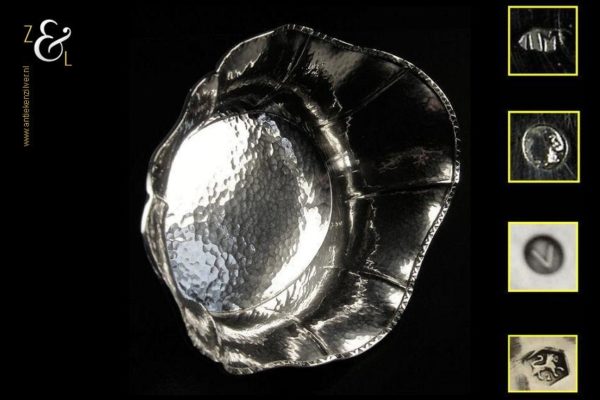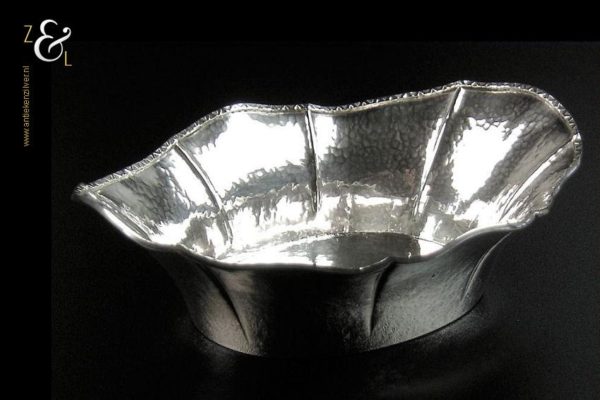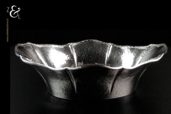 Bonbonmandje gemaakt in Schoonhoven door L. Marcelis (meesterteken LM3 in puntovaal) in het jaar 1930 (jaarletter V). Dit gehamerde zilveren in Art Deco stijl uitgevoerde mandje is afgewerkt met een gewalste band die op de rand gesoldeerd is, respectievelijk aan de buiten- en binnenkant. Het bonbonmandje weegt 99 gram is 14.7 cm lang 10.3 cm breed en 4.5 cm hoog.