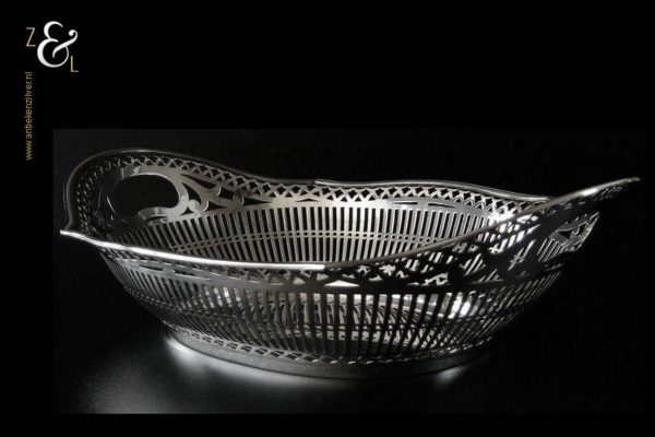 Broodmand gemaakt in Haarlem door de Firma A. Presburg & Zoon (meesterteken APz3 in zeskantige rechthoek) in het jaar 1963 (jaarletter D). De royale zilveren broodmand die is uitgevoerd met een exclusieve filetrand weegt 500 gram is 33.5 cm lang 24.2 cm breed en 9 cm hoog. De bodem van de broodmand is 19 cm lang bij 14.5 cm breed.