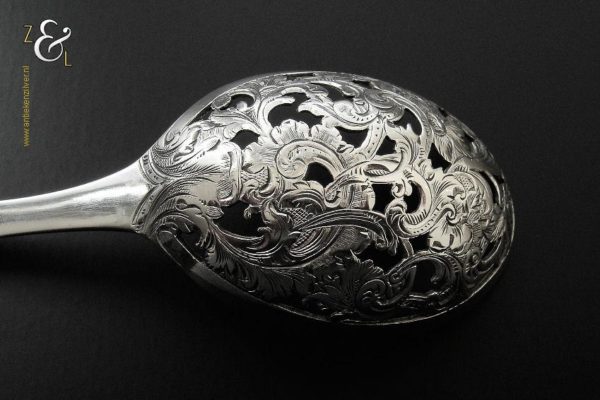 Omdat het formaat van deze lepel nogal klein is voor kippeneieren vermoeden wij dat deze lepel gebruikt is voor de kleinere kievitseieren. Tevens vonden wij een afbeelding van een soortgelijke lepel (waarvan de achterzijde van de bak is uitgevoerd met de voorstelling van een gegraveerde en uitgezaagde kievit) in het boek Nederlands Klein Zilver 1650 – 1880 van B.W.G. Wttewaall blz. 185 Afb. 165. Deze latere lepel (1859) is óók gemaakt door H.A. Schuss te Amsterdam en maakt deel uit van de collectie van het Nederlands Zilvermuseum in Schoonhoven.