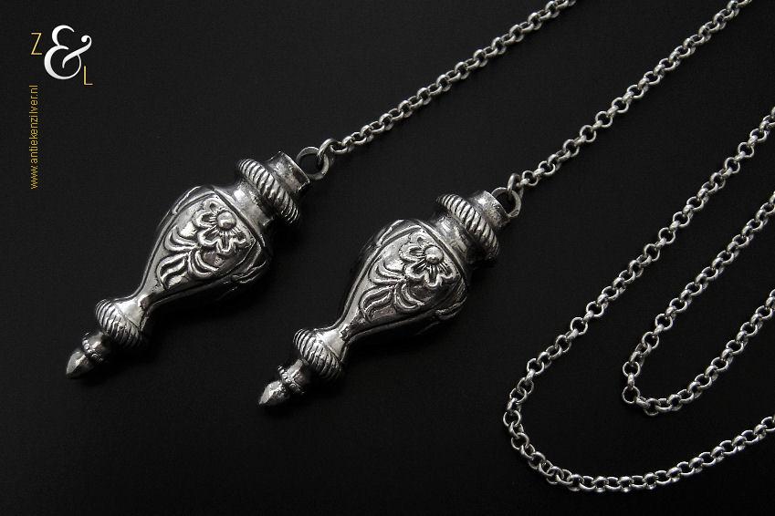 Mooie zeventiger jaren halsketting met hanger. De hanger is ontworpen en gemaakt door edelsmid Menno Meijer (meesterteken FM2 in zeshoek) in Gouda Nederland. De zilveren hanger meet 7.2 cm bij 2.8 cm en de zilveren ketting is 58 cm lang, samen wegen zij 50 gram.