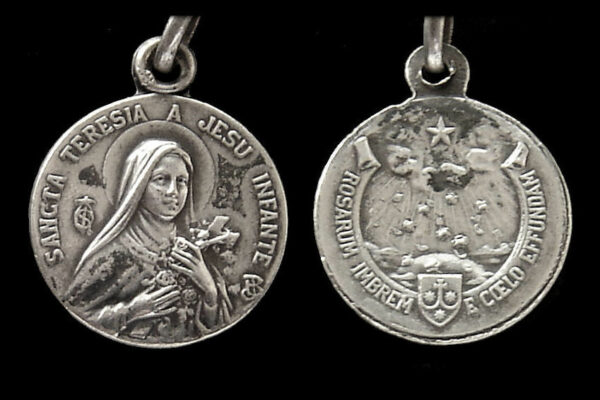 De tweede medaille heeft aan een zijde de afbeelding van de Heilige Teresia met in haar handen een kruis en rozen en de tekst “Sancta Teresia a Jesu Infante” ( De Heilige Teresia tot het Kind Jezus). De andere zijde heeft de afbeelding van de hemel waaruit rozen vallen met de tekst “Rosarum Imbrem e Coelo Effundam” (ik zal een regen van rozen uit de hemel laten vallen). De medaille heeft een diameter van 1 cm.