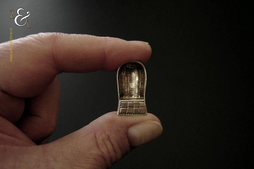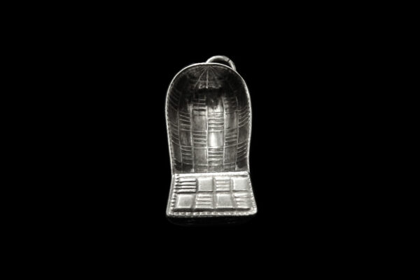 Deze zilveren bedel van een rieten strandstoel is gemaakt omstreeks het midden van de twintigste eeuw (zestiger- zeventiger jaren). De mooi gedetailleerde bedel kan men zowel aan een bedelarmband dragen als aan een kettinkje. De bedel weegt 3 gram en is 2.5 cm lang.