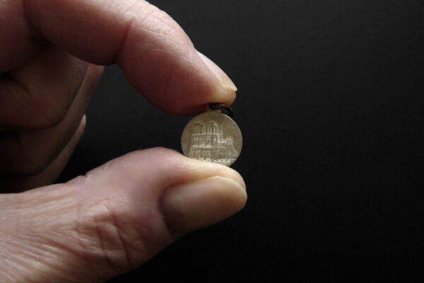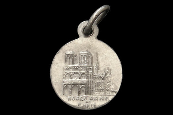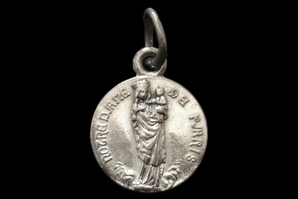 Deze zilveren devotie medaille met religieuse voorstelling is gemaakt in Frankrijk omstreeks het midden van de twintigste eeuw. De medaille heeft aan beide kanten de tekst “Notre Dame de Paris” met aan de ene zijde een afbeelding van de Notre Dame en aan de andere zijde een afbeelding van Maria met kind. De medaille weegt 1 gram en heeft een diameter van 1.3 cm.