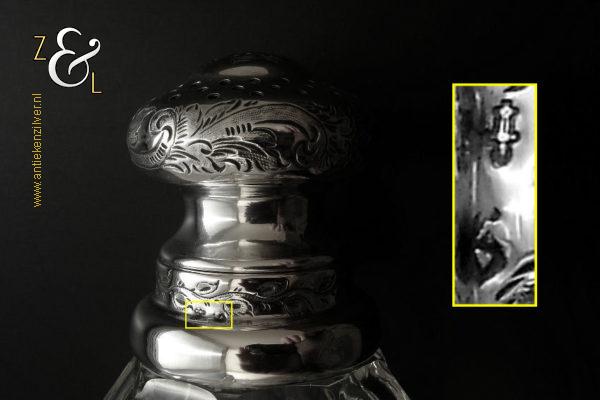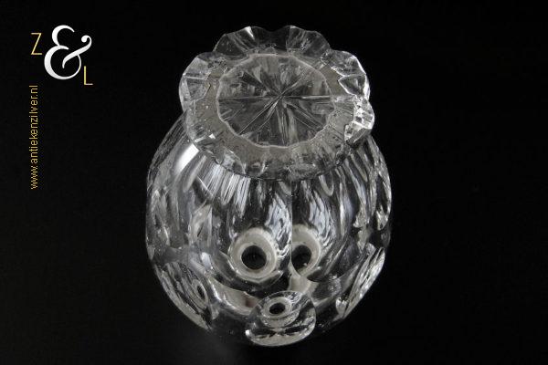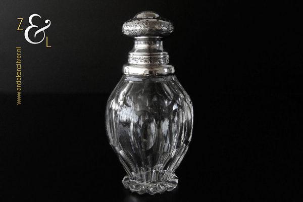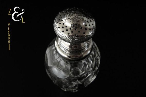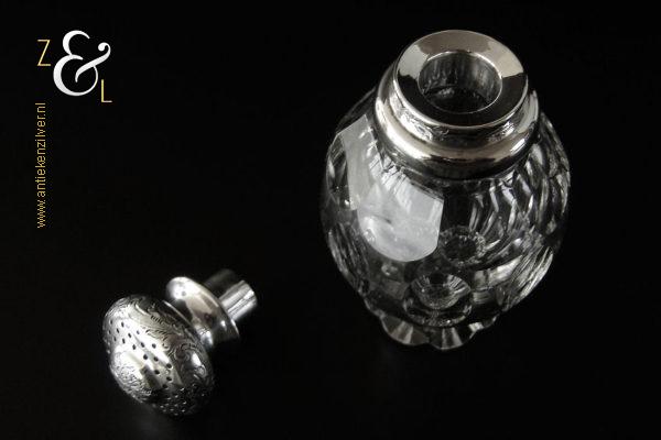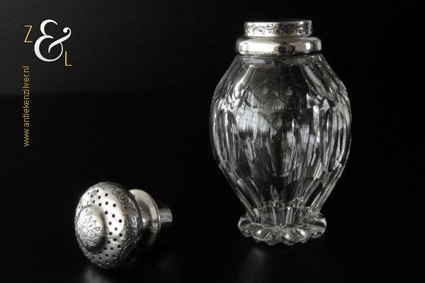 Van deze in Biedermeier stijl uitgevoerde strooibus is het zilveren montuur en dop gemaakt in Zaandam / Amsterdam door August Heinrich Ankum (meesterteken Hartje onder A in langwerpige zeshoek) tussen 1851 en 1896 gekeurd met het zilverkeur zwaardje (dit is het gehaltemerk voor kleine zilveren werken). Het zilveren montuur en dop zijn gegraveerd met c-vormige voluten, blad- en bloemmotieven. Het mondgeblazen, geslepen en gepolijste kristallen reservoir heeft aan de boven- en onderzijde acht op de hand geslepen ribben en in het midden acht geslepen olijven. Tevens heeft de strooibus een geschulpte voet en is aan de onderzijde voorzien van een geslepen ster. De strooibus weegt 259 gram is 14.4 cm hoog en heeft een diameter van 7.3 cm.