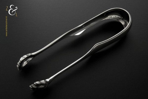 Deze suikerklontjestang / ijsklontjestang is gemaakt in Rotterdam door Willem Baksteen & Cornelis Johannes Middendorp (meesterteken B&M boven ster in rechthoek) in het jaar 1870 (jaarletter L). De zilveren Neostijl suikerklontjestang / ijsklontjestang is uitgevoerd met een filetrand en heeft klauwpootjes waardoor hij ook goed te gebruiken is voor ijsklontjes. De tang weegt 40 gram en is 13 cm lang.