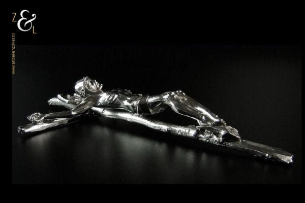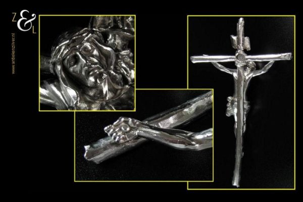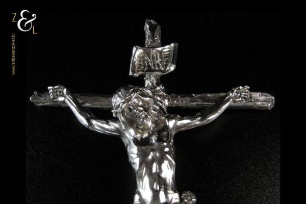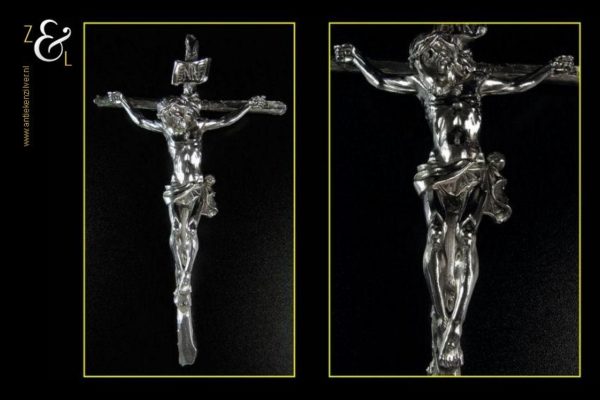 Crucifix gemaakt in Italië en gemerkt met o.a. depu ITALY. Deze prachtige groot uitgevoerde zilveren crucifix weegt 154 gram is 27 cm lang en 16 cm breed.