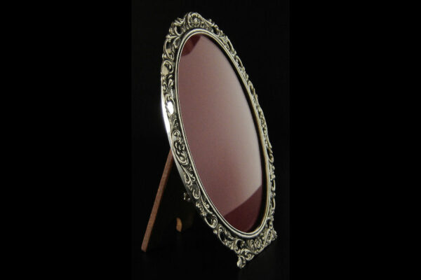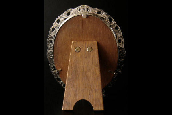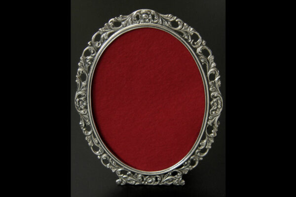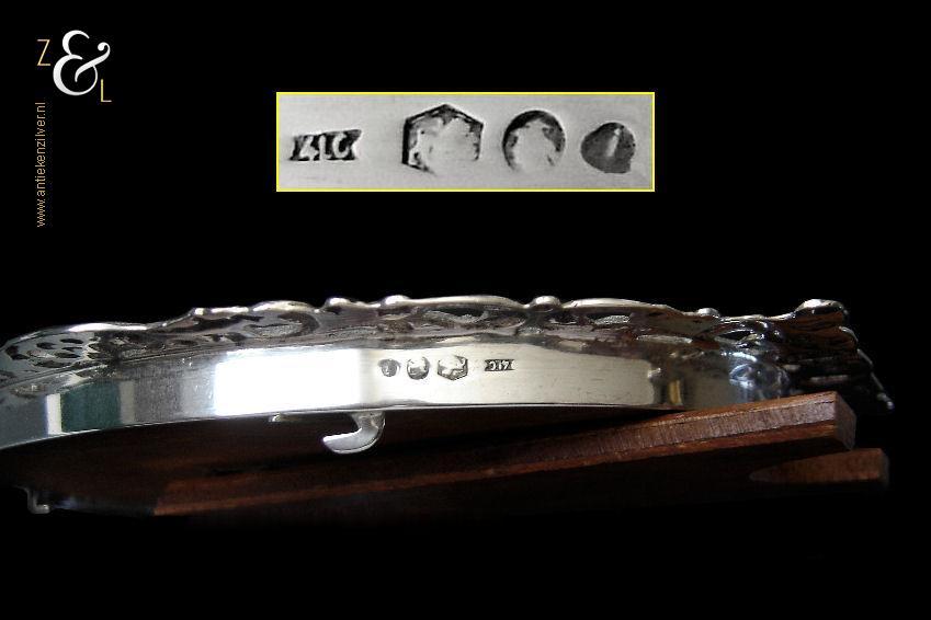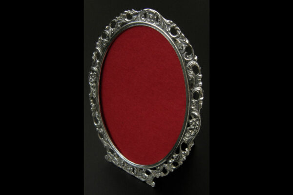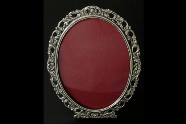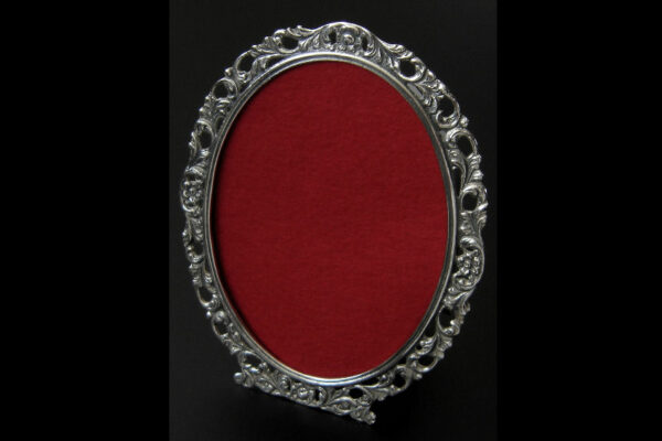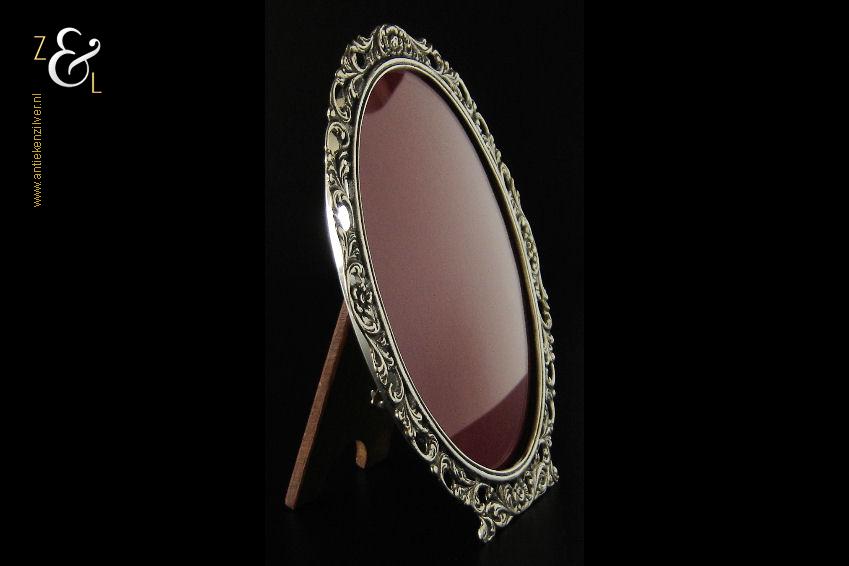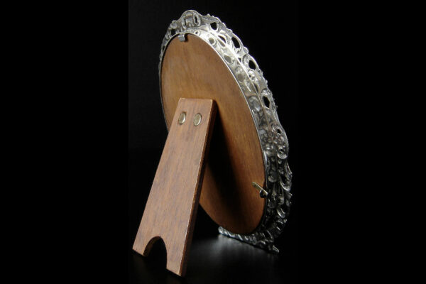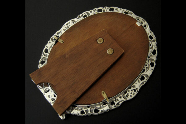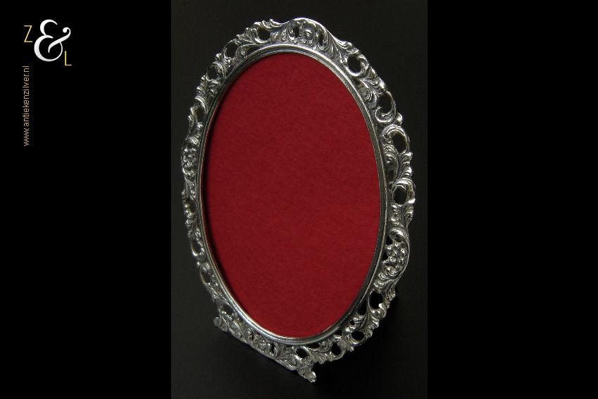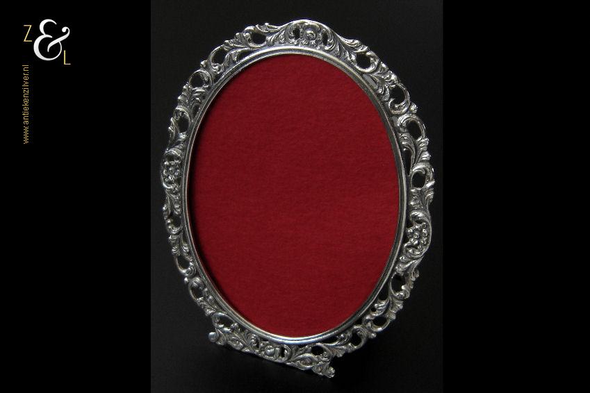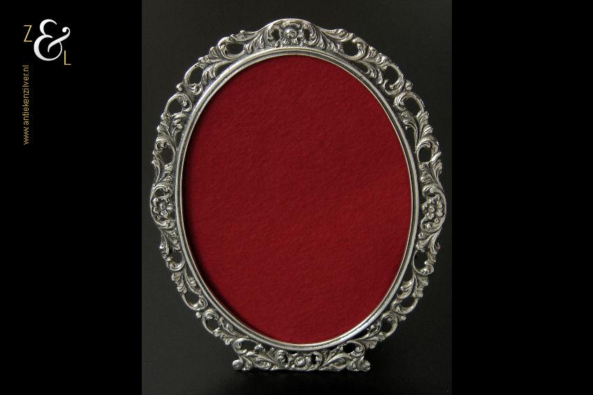 Deze fotolijst is gemaakt in Haarlem door G. la Court (meesterteken 4LC in zeshoek) in het jaar 1968 (jaarletter I). De fotolijst heeft zijn originele houten achterkant die makkelijk uitneembaar is door twee verschuifbare haakjes. De ajour gegoten zilveren fotolijst weegt inclusief glas en achterkant bruto 115 gram, de zilveren lijst weegt netto 50 gram en is 13.8 cm lang bij 11.1 cm breed. De fotolijst is geschikt voor ovale foto’s van 11.2 cm bij 8.4 cm en heeft nog het originele bolle glas. Op de afbeeldingen is de fotolijst (i.v.m. reflectie in het bolle glas) gefotografeert mèt en zònder glas.