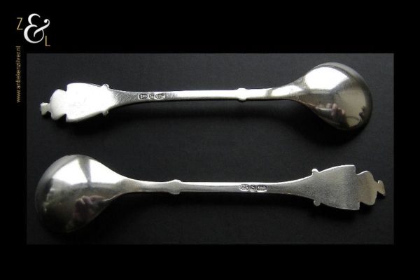 De lepels hebben in rood geëmailleerd het wapen van Noorwegen (staande leeuw met bijl) en zijn 6.5 cm lang. Ze zijn gekeurd met 925 S (wat staat voor eerste gehalte sterling zilver) en hebben een door ons nog niet gevonden meesterteken.