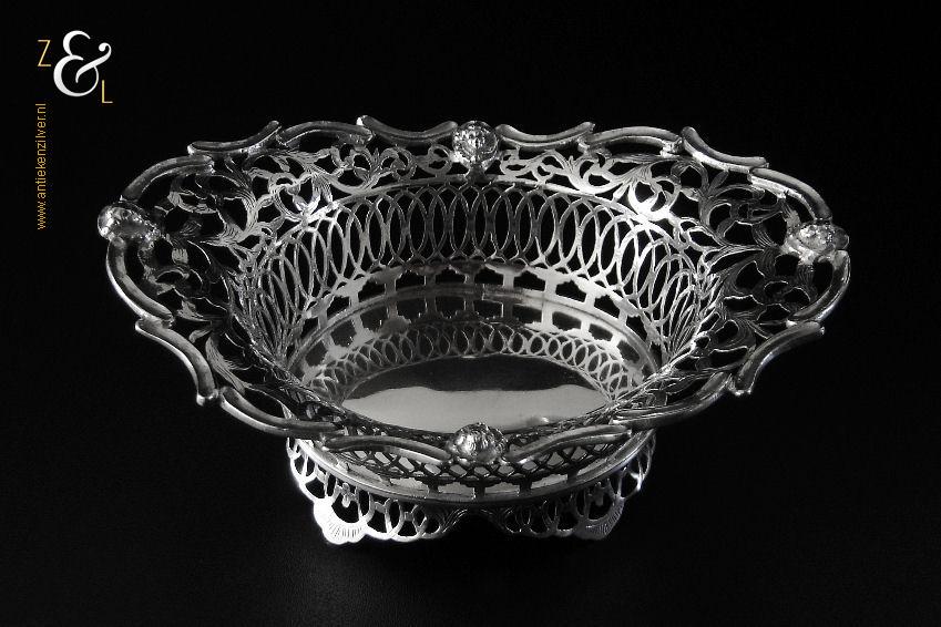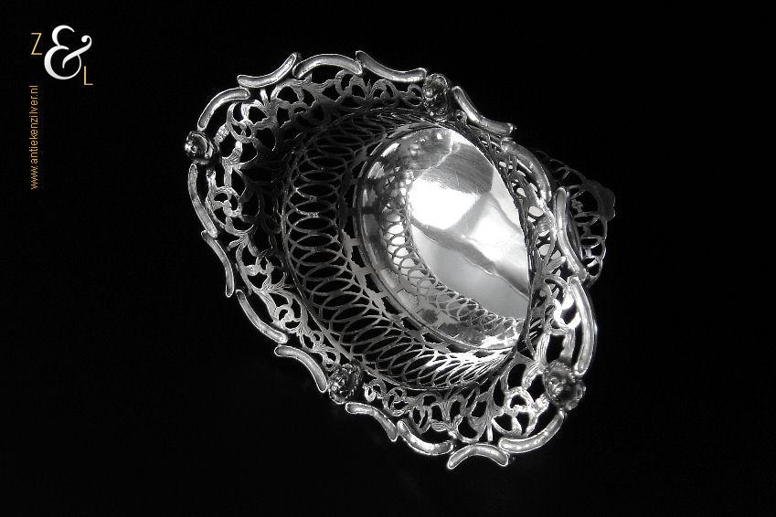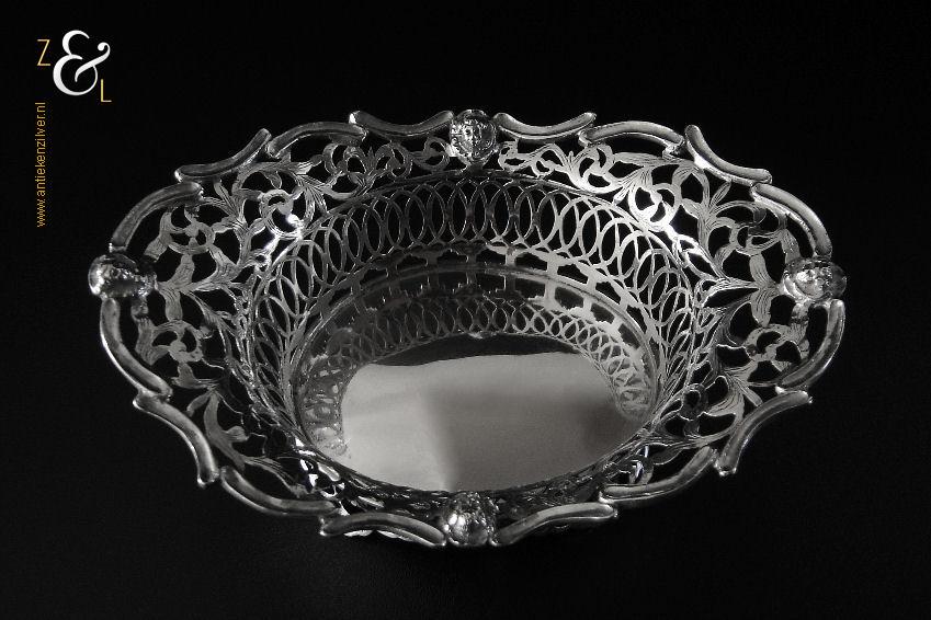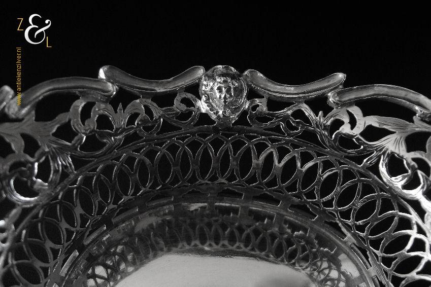 Dit bonbonmandje is gemaakt in Alkmaar door M.J.W.F. Spaargaren (meesterteken S2 boven ster in ovaal) en Israël Prins Jakobszoon (meesterteken I:P in zeshoek) in het jaar 1914 (jaarletter E). Het op de hand uitgezaagde, gedreven en gegraveerde bonbonmandje is uitgevoerd met een rand van gegoten en gesoldeerde c-vormige voluten en engelenkopjes. Het in Rococo stijl gemaakte zilveren bonbonmandje heeft vier uitgezaagde en gegraveerde pootjes weegt 164 gram is 16.6 cm lang 10.7 cm breed en 8 cm hoog.