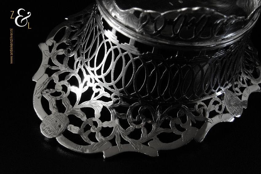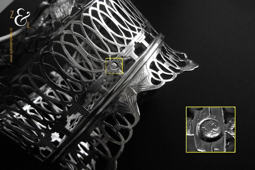 Aan dit mandje hebben twee zilversmeden gewerkt, dit is niet bijzonder. Vroeger werkten er vaker meerdere zilversmeden aan één stuk, de een deed bijvoorbeeld het drijf- en zaagwerk en de andere fabriceerde en soldeerde de gegoten stukken.
