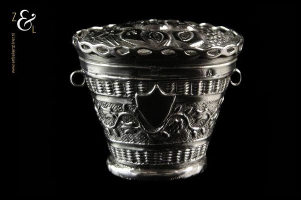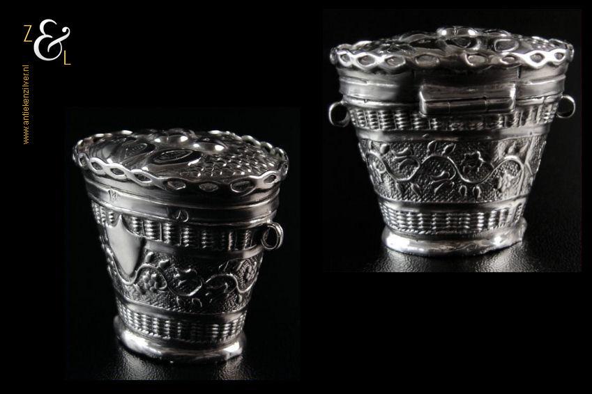 Dit loddereindoosje / lodereindoosje of reukdoosje is gemaakt in Schoonhoven door Dirk Hendrik Greup Sr. (meesterteken G boven 144 in vierkant) in het jaar 1835 (jaarletter A). Het zilveren Biedermeier doosje weegt 19 gram is 3.6 cm hoog 3 cm breed en 4.4 cm lang. Het doosje is gemaakt in de vorm van een fruitmand en heeft rondom een band met bloemmotieven aan de voorzijde zit een schildje waarop men zijn initialen kan zetten (niet gebruikt). Het scharnierend deksel heeft een ajourrand en bovenop fruitmotieven van onder andere druiventrossen. Aan de zijkanten zitten oogjes waaraan men een kettinkje kan bevestigen zodat men het aan een chatelaine kan dragen. Het doosje heeft lichte gebruikssporen aan de onderste rand.