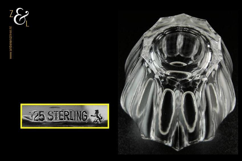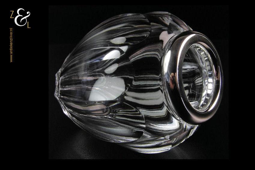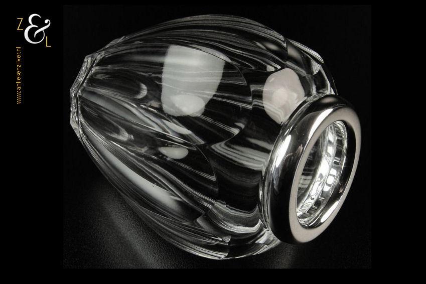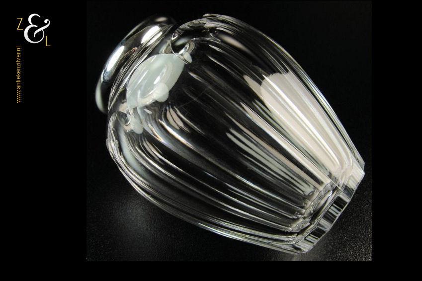 Dit lepelvaasje is gemaakt in Schwäbisch Gmünd Duitsland door de zilversmederij Gebrüder Deyhle (meesterteken staande leeuw) in de eerste helft van de 20e eeuw. Het in Art Deco stijl uitgevoerde kristallen gefacetteerde lepelvaasje heeft tien ribben en is voorzien van een zilveren montuur dat de keuren 925 STERLING met een staand leeuwtje draagt. Het lepelvaasje is 10.2 cm hoog heeft een diameter van 8 cm en weegt 332 gram.