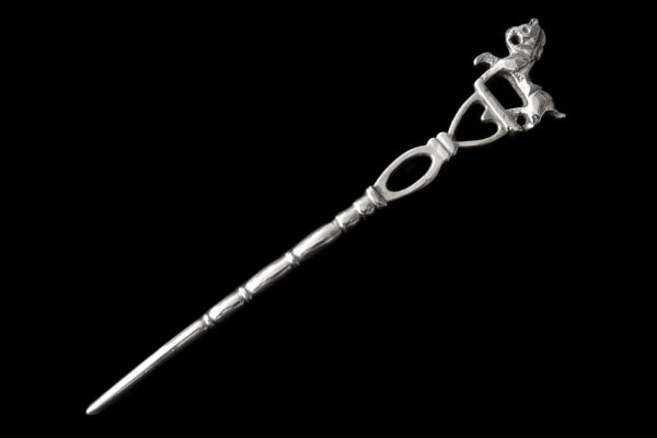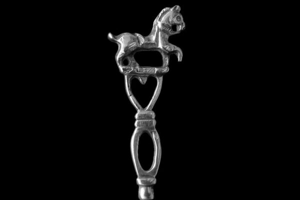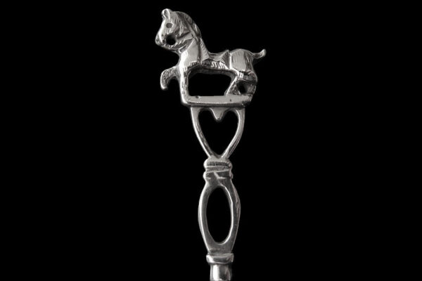 Deze pijpenwroeter is gemaakt in Schoonhoven door Willem Kooiman Jansz. (meesterteken WK 122 in rechthoek) tussen de jaren 1856 en 1874. De pijpenwroeter is gekeurd met het zilverkeur zwaardje dit is een gehaltemerk voor zilveren voorwerpen dat in de periode tussen 1814 en 1905 in gebruik was. De zilveren pijpenwroeter bekroond met een staand dressuurpaard weegt 9 gram en is 10.2 cm lang.