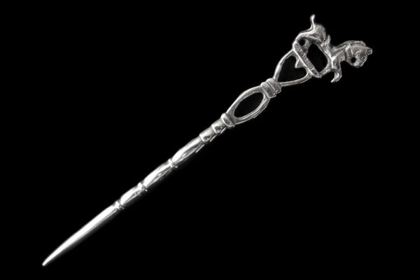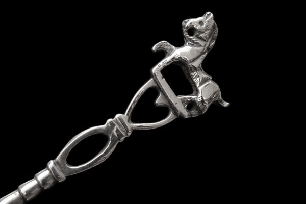 Deze pijpenwroeter is gemaakt in Schoonhoven door Willem Kooiman Jansz. (meesterteken WK 122 in rechthoek) tussen de jaren 1856 en 1874. De pijpenwroeter is gekeurd met het zilverkeur zwaardje dit is een gehaltemerk voor zilveren voorwerpen dat in de periode tussen 1814 en 1905 in gebruik was. De zilveren pijpenwroeter bekroond met een staand dressuurpaard weegt 9 gram en is 10.2 cm lang.