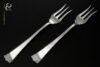 Deze set van één servetring en één vingerdoekring is in de eerste helft van de 20e eeuw gemaakt in Pforzheim Duitsland door de Zilverfabriek Lutz & Weiss (meesterteken LW in schild). Tevens zijn de gehamerde in Art Deco stijl uitgevoerde servet- en vingerdoekring gemerkt met het oude Nederlandse belastingstempel V dat van 1906 tot 1953 voor buitenlandse werken gold en met het Duitse zilverkeur “halve maan en kroon” met daarachter 835 S die de fijnheid van het zilver in duizendsten aangeeft 835/000 = 2e gehalte zilver, deze manier van keuren is in Duitsland geünificeerd in 1888, dit garantiesysteem is tegenwoordig nog steeds in gebruik. De servetring heeft een diameter van 5.5 cm en is 3 cm breed en de vingerdoekring heeft een diameter van 3 cm en is 1.7 cm breed samen wegen ze 26 gram. De servet- en vingerdoekring hebben lichte gebruikssporen.