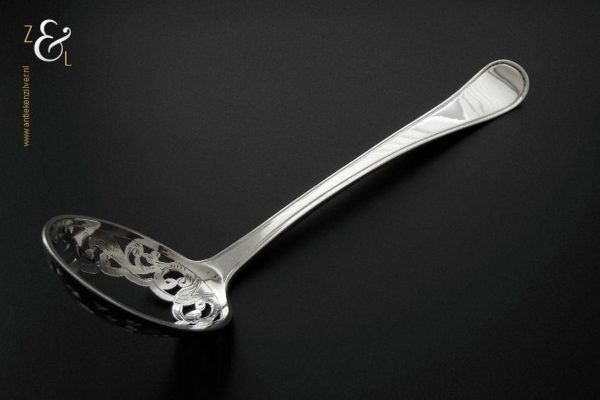 Deze eierlepel is gemaakt in Amsterdam door Theodorus Lambertus & Pierre Louis Uriot (Firma T.L. Uriot & Zoon) (meesterteken TU boven Z3 in vierkant) in het jaar 1887 (jaarletter C). De zilveren Neostijl eierlepel model rondfilet weegt 54 gram en is 20.4 cm lang. De uitgezaagde en gegraveerde bak is 6.9 cm lang 5.2 cm breed.