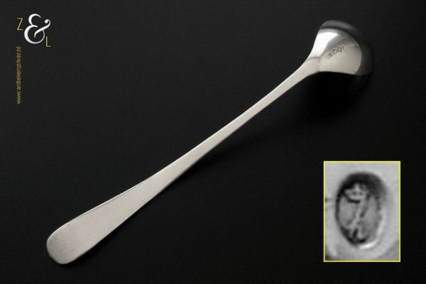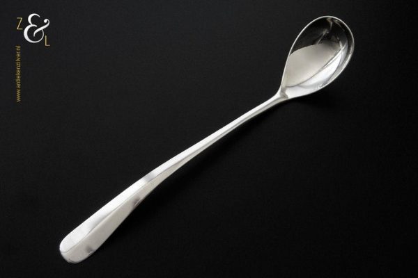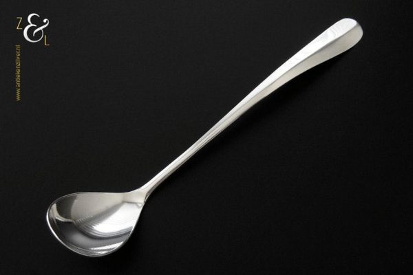 Jamlepel / confiturenlepel gemaakt in Zeist door Gerritsen & van Kempen (meesterteken V.K. in G) in het jaar 1946 (jaarletter K met kroon*). De in model Hollands glad uitgevoerde zilveren jamlepel / confiturenlepel weegt 28 gram en is 17 cm lang. De lepelbak is 4.5 cm lang bij 3 cm breed.