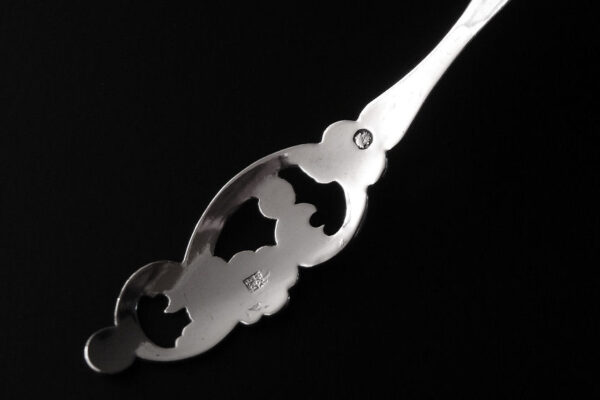 Deze natfruitschep / pasteischep is dezelfde als afgebeeld in het boek B.W.G. Wttewaal Nederlands Klein Zilver blz. 182 Afb. 155.