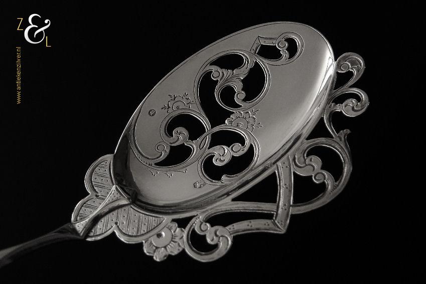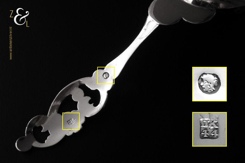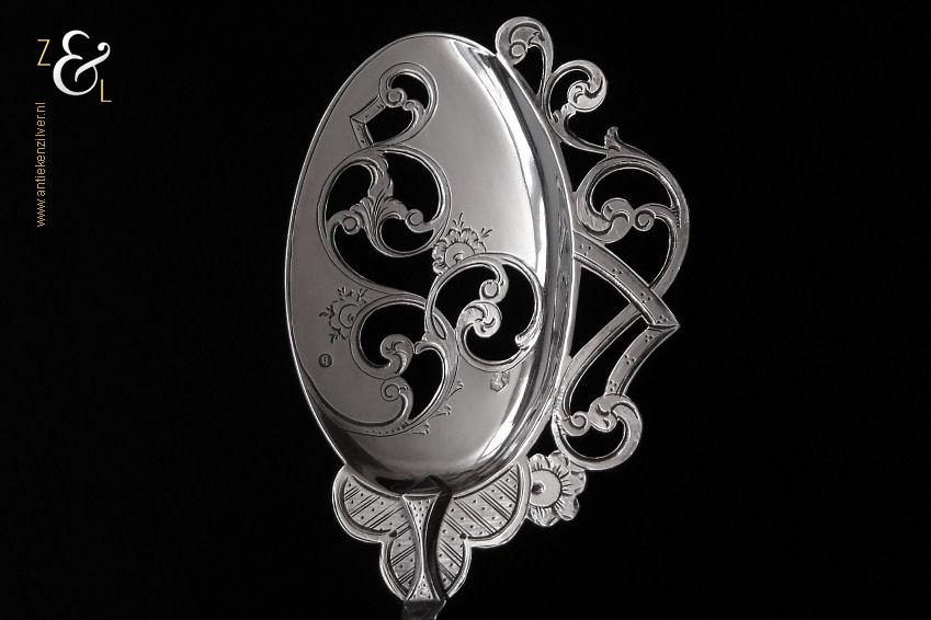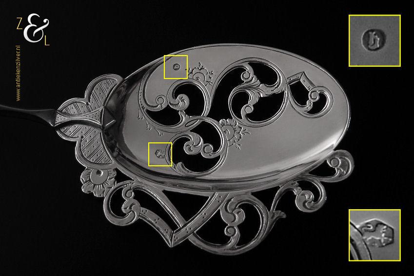 Deze natfruitschep / pasteischep is dezelfde als afgebeeld in het boek B.W.G. Wttewaal Nederlands Klein Zilver blz. 182 Afb. 155.