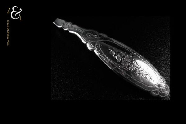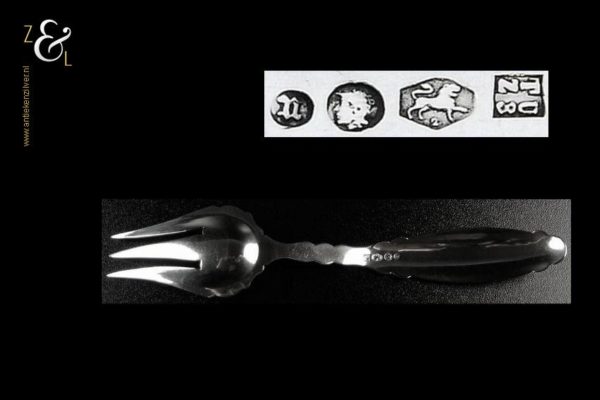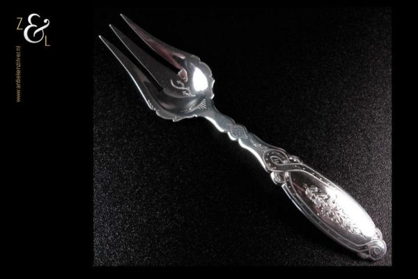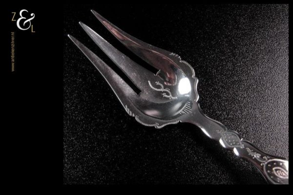 Deze belegvork / zuurvork is gemaakt in Amsterdam door Theodorus Lambertus & Pierre Louis Uriot (Firma T.L Uriot & Zoon) (meesterteken TU boven Z3 in vierkant) in het jaar 1879 (jaarletter U). De zilveren Biedermeier belegvork / zuurvork waarvan de steel gegraveerd is met bloemmotieven weegt 25 gram en is 17 cm lang.